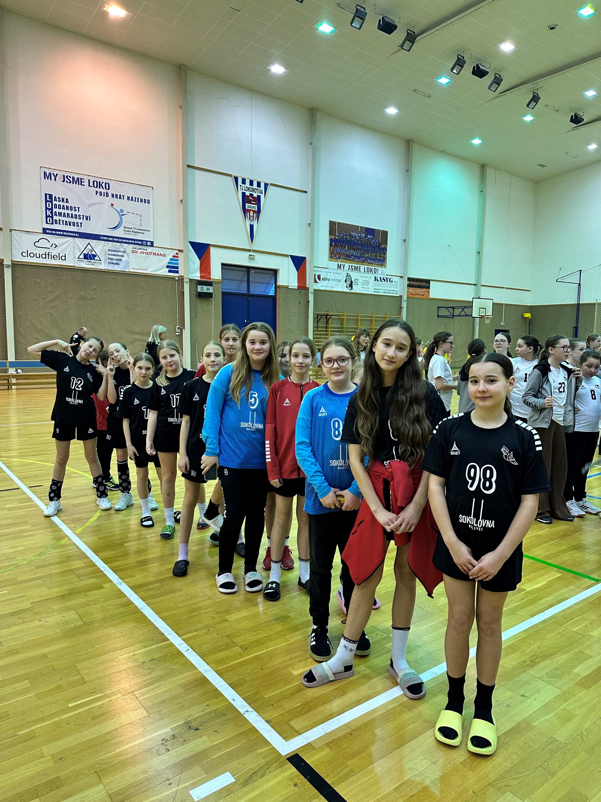 Kromě Alenky, která dorazila až v neděli ráno přímo na halu, byly všechny holky pospolu již od sobotního turnaje minižaček a bylo na nich vidno, že se na své zápasy těší a chtějí navázat na povedené výkony svých mladších kamarádek.