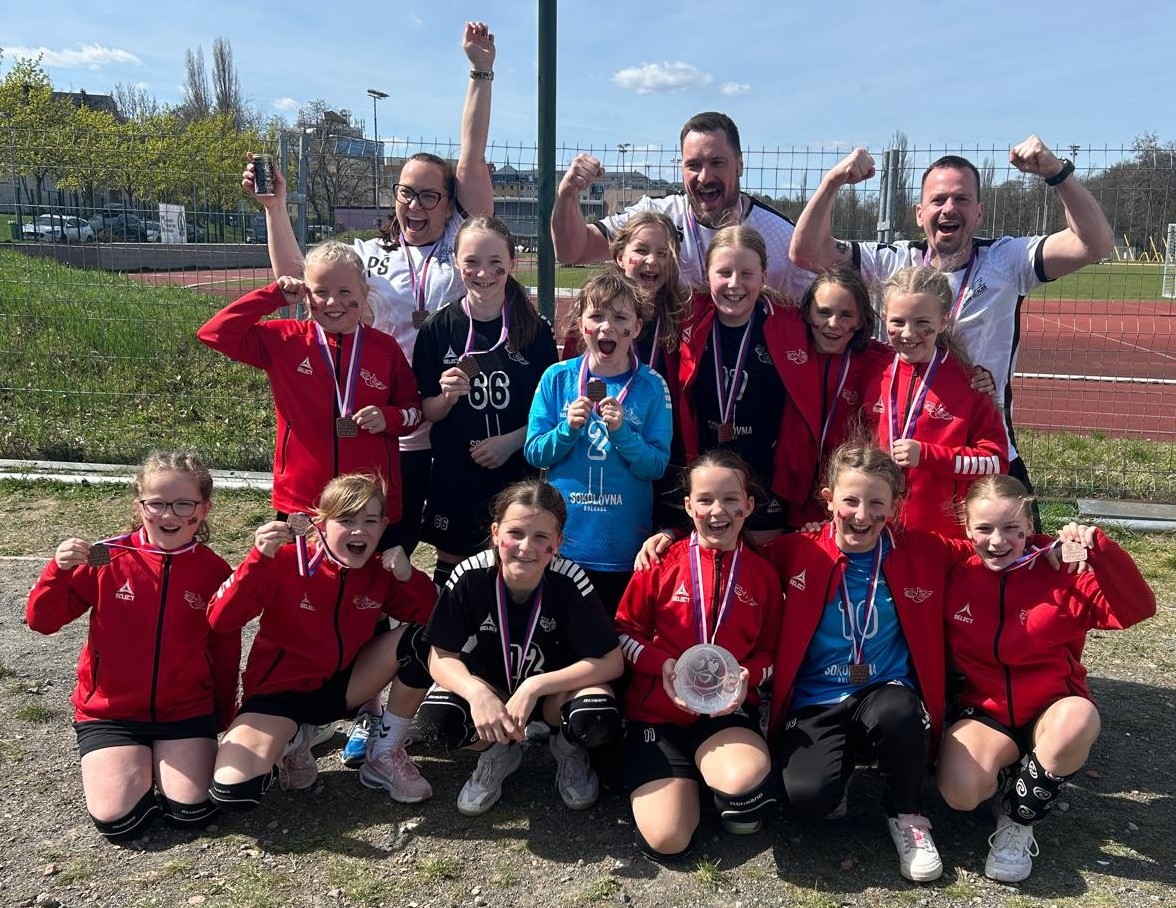 Zápas o třetí místo má dvě odvrácené tváře. Můžete prožít euforii při vítězství a zisku medaile (což si třeba poražený z finále neprožije), ale také můžete jet domů s nechtěnou bramborou😊. Naší překážkou mezi úspěchem a neúspěchem byl slovenský tým z Piešťan. Další v řadě pro nás neznámých soupeřů, což je jedno z mnoha specifik Pragáče a přesně proto chcete takový turnaj hrát. Pro taktickou přípravu jsme opět udělali maximum a velmi nám pomohla tajná, pozdně večerní schůzka z předchozího dne 😊. Při předzápasové rozcvičce jsme poprvé na turnaji cítili z týmu velkou nervozitu. Snažili jsme se to korigovat mnoha způsoby, ale nešlo se toho pocitu zbavit. Byli jsme si jisti, že začátek zápasu nebude optimální a budeme potřebovat nějaký čas a sílu jednotlivých momentů, aby z nás to břímě opadlo. Vstup do utkání to bohužel přesně potvrdil. V 5. minutě jsme prohrávali 0:3 po činnostech, na které jsme se připravovali. Velkou výhodou pro nás byla možnost time-outu, která už visela ve vzduchu. Holky se však začaly dostávat do zápasu a nervozita v podobě technických chyb postupně odpadávala. Začátek 7. minuty 2:3, v 10. minutě jdeme poprvé do vedení 5:4. Time-out byl tak nutný jen k načerpáním sil a několika málo taktickým změnám. Postupem zápasu jsme převzali otěže. Dařila se nám hra přes pivota, náběhový tlak a zdravě jsme přitvrdili v obraně. V druhém poločase jsme již začali soupeři odskakovat a mohli si plnými doušky užívat, co se děje na place. Zpětně mi to všechno splývá, najednou stojíme a odpočítáváme posledních 10 vteřin utkání. Dokázali jsme to. Holky to dokázaly. Získáváme nejcennější trofej, jakou se nám zatím podařilo získat. Každá medaile z Prague Handball Cupu je obrovským úspěchem. Může se stát, že se něco podobného už nikdy nepovede a je spousta hráček, kterým se to nepodařilo vůbec. Jsme na holky neuvěřitelně pyšní a vezeme si domů nejlepší možnou velikonoční nadílku.